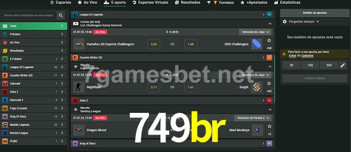 A aposta 749br oferece aos jogadores a experiência mais conveniente de apostas em eSports!